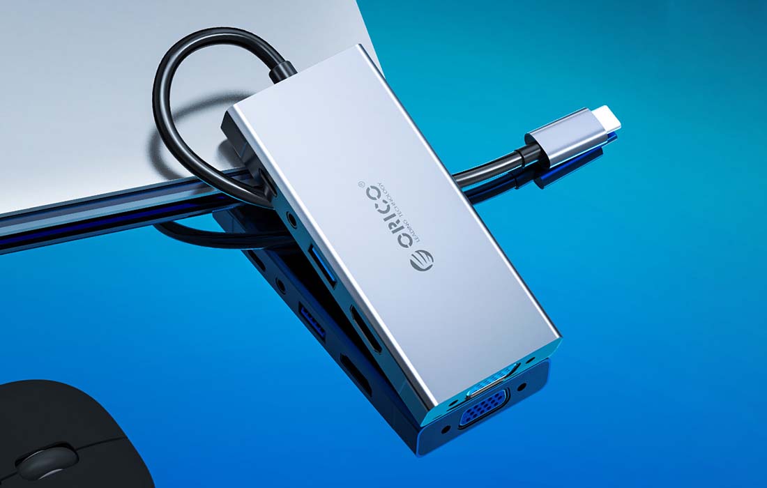 Twój laptop lub komputer ma za mało portów? Teraz możesz łatwo rozwiązać ten problem! Stacja dokująca marki Orico została wyposażona w kilka różnych gniazd takich jak USB-C, USB3.0, HDMI, VGA oraz audio 3,5 mm. Pozwala na szybkie ładowanie z mocą 60 W i umożliwia przesyłanie plików z prędkością do 5 Gbps. Umożliwia też wyświetlanie obrazu 4K i obsługuje OTG.