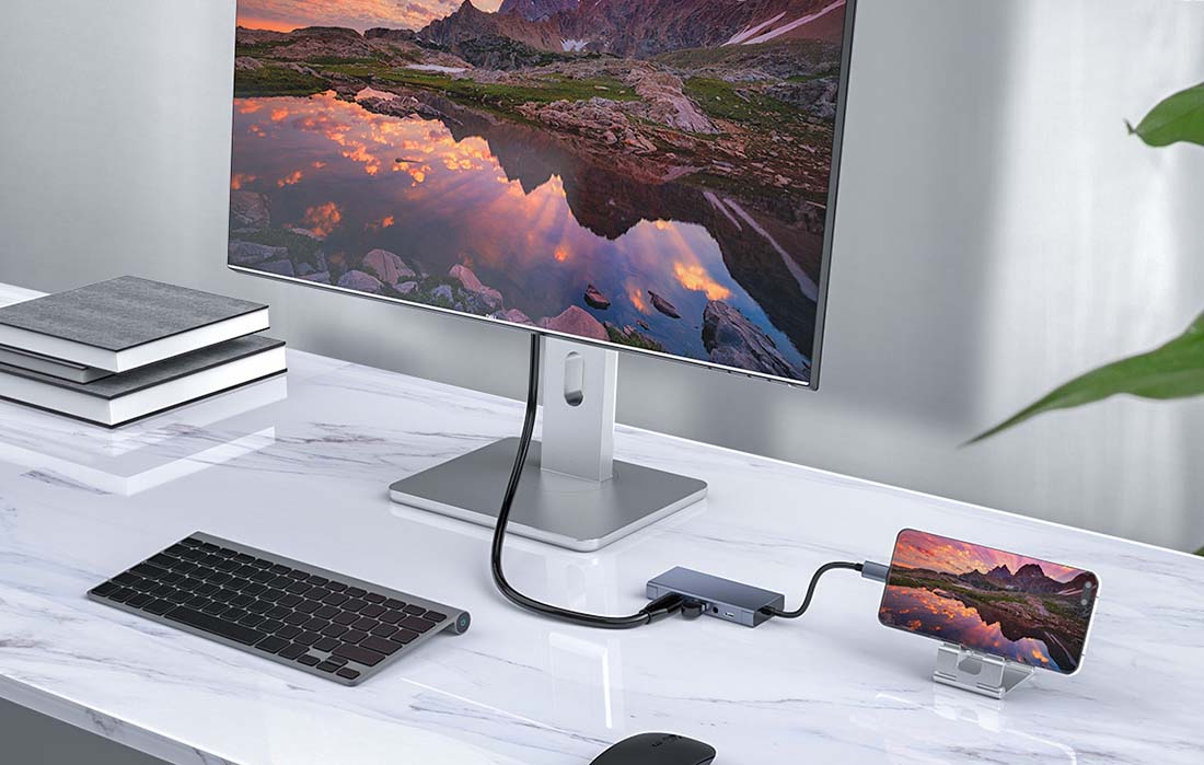 Twój telefon obsługuje OTG? Wykorzystaj stację dokującą Orico, aby na przykład odtwarzać na nim filmy z pendrive’a! Możesz też podłączyć ją do tabletu i wygodnie otwierać najważniejsze dokumenty. Urządzenie pozwala też wyświetlać obraz ze smartfonów Huawei Mate 40 lub P40 na większym ekranie.