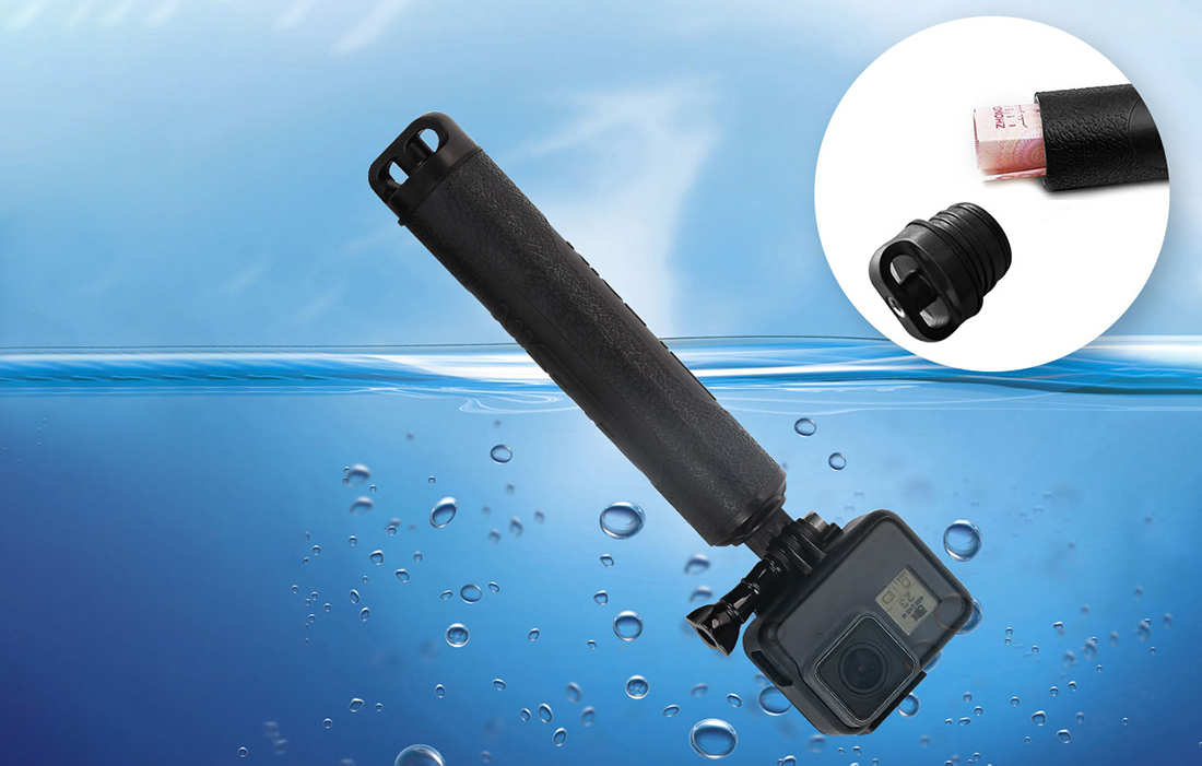 Wewnątrz uchwytu znajdziesz pustą przegródkę, która umożliwia wygodne przechowywanie niewielkich przedmiotów. Możesz też nalać do niej wody, aby akcesorium lepiej utrzymywało się na odpowiednim poziomie pod powierzchnią morza czy jeziora. To Twój nowy sposób na tworzenie oryginalnych, podwodnych ujęć!