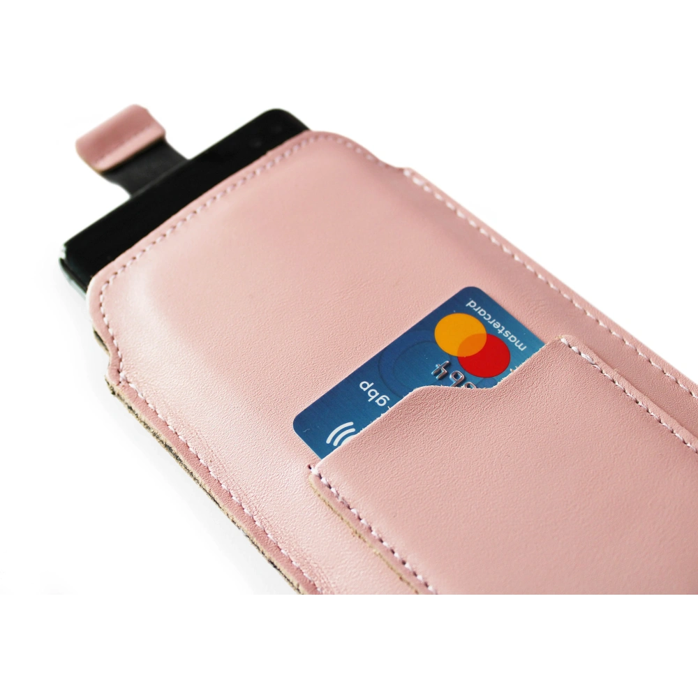 Skórzane etui uniwersalne LURESKO ASTER 4XL z oczkiem na smycz wsuwka na telefon do 7' (różowy gładki biała nić)