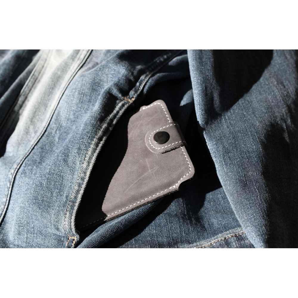 Pokrowiec zamykany jest na pasek z guzikiem zatrzaskowym / napem - gwarantuje to bezpieczeństwo telefonu.