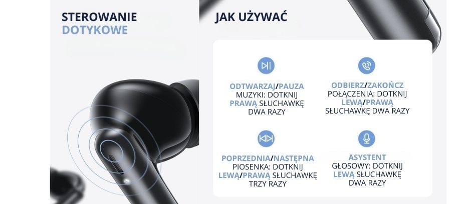 Wprowadzenie dotykowego panelu do słuchawek umożliwia intuicyjne sterowanie słuchawkami za pomocą prostych gestów dotykowych. Ta nowoczesna technologia ułatwia ich obsługę, korzystanie z nich jest jeszcze prostsze i przyjemniejsze.