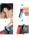 Transmiter Bluetooth do Nintendo Switch pozwala na bezprzewodowe podłączenie do konsoli nawet dwóch słuchawek bezprzewodowych na raz. Wystarczy podłączyć go do portu 3,5 mm mini jack aby pozbyć się problemu z plączącymi się kablami od tradycyjnych słuchawek. Kolorystyka urządzenia jest dopasowana do barw Nintendo Switch. Dzięki temu doskonale wkomponowuje się w obudowę konsoli.