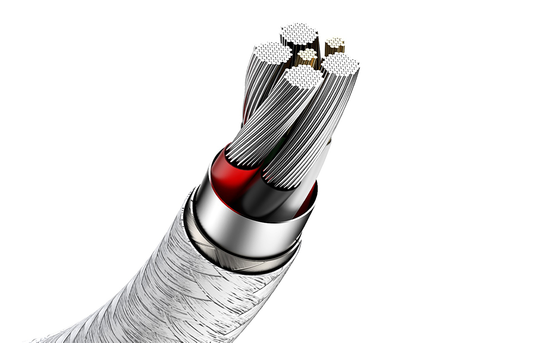 Solidna konstrukcja razem z miedzianym rdzeniem odpowiadają za niesamowicie wydajny przewodnik, dzięki któremu możliwe jest tak skuteczne ładowanie urządzeń. Proces ten usprawnia także stabilne złącze, które odpowiednio dopasowuje się do portu telefonu i pewnie tkwi na swoim miejscu, nie luzując się ani nie wypadając. Co więcej, dodatkowa ochrona wykonana z gumy zabezpiecza wejście telefonu przed zadrapaniem.