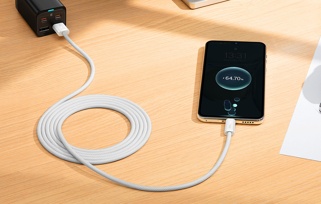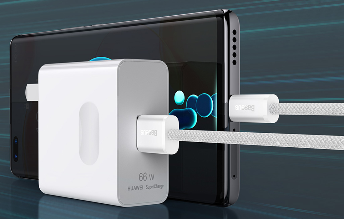 Już nie musisz czekać w nieskończoność, aż Twój smartfon się naładuje. Kabel Baseus wykorzystuje moc 100W, dzięki czemu szybko przygotujesz urządzenie do ponownej pracy — Honor 50 Pro może być w pełni naładowany już w 27 minut. Natomiast Mate 40 Pro naładujesz do 86% w zaledwie 30 minut (66W). Urządzenie jest kompatybilne z portem USB-C.